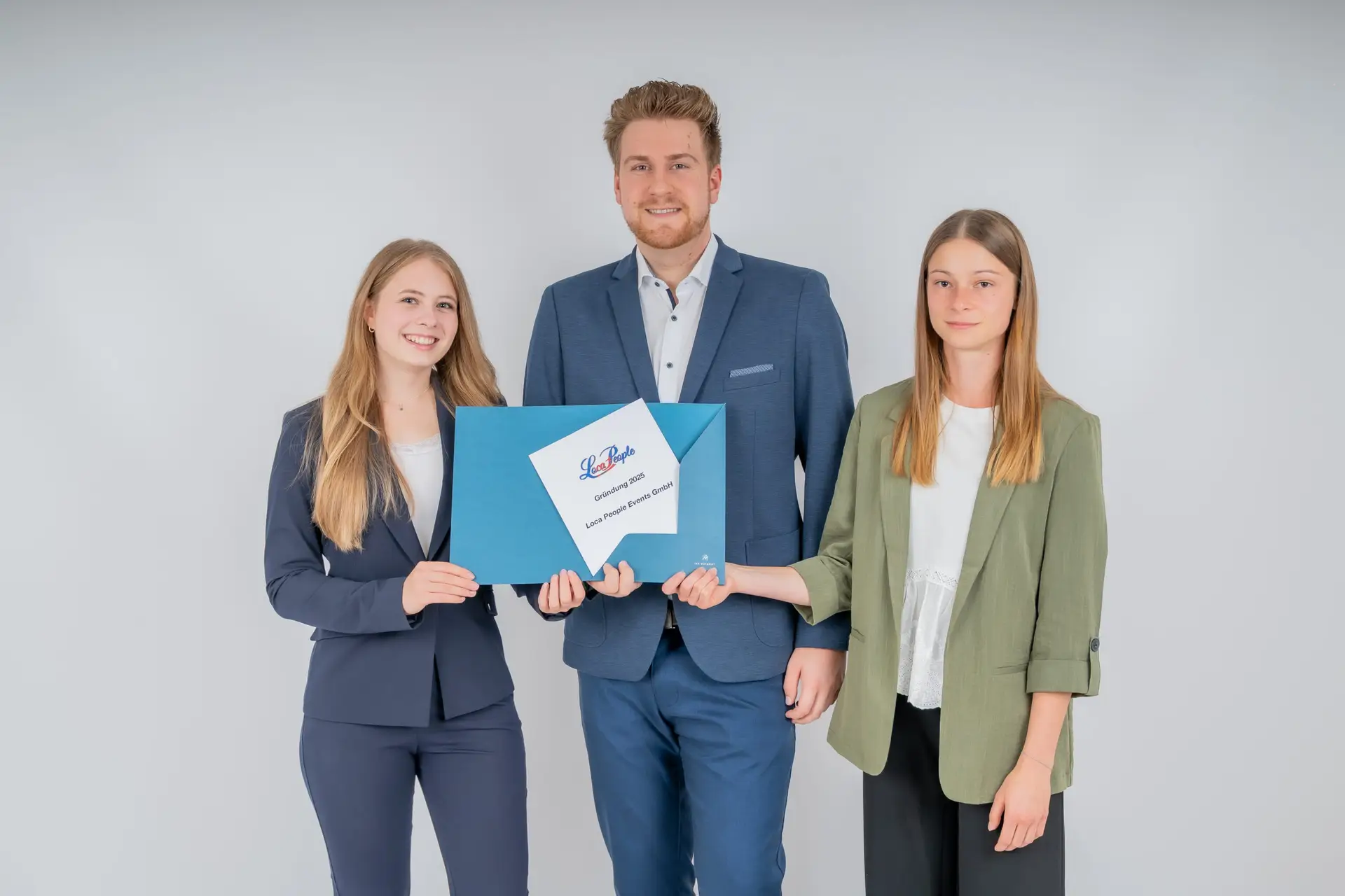 Selina, Lorenz & Lisa – wir stehen gemeinsam hinter dem Unternehmen. 🍾